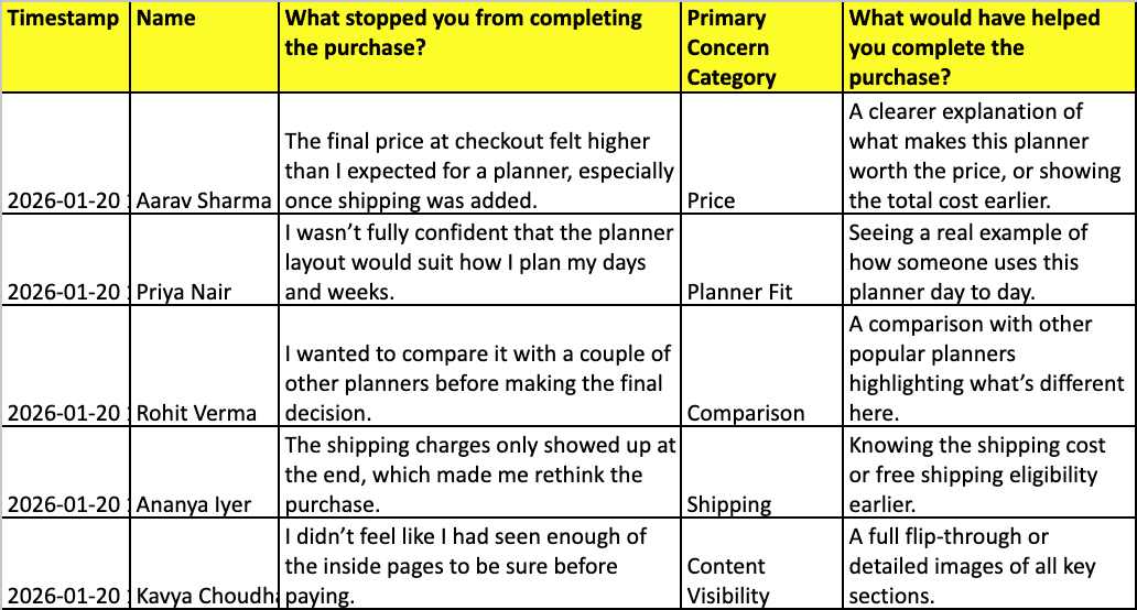 42 Completed Responses neatly organised in Sheets/Excel